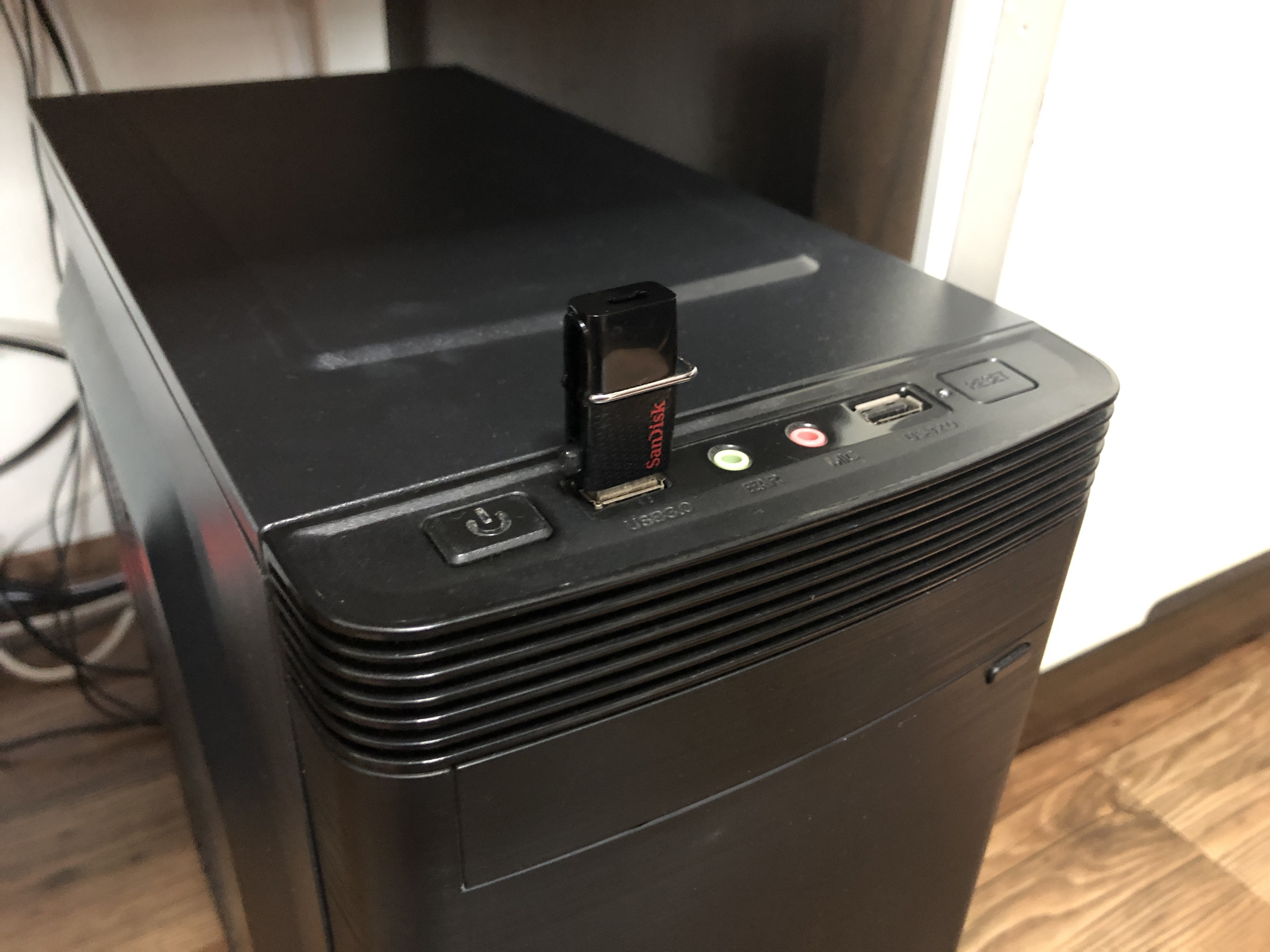 우분투(리눅스)가 설치된 USB를 본체에 연결한 후 컴퓨터 전원을 켭니다.