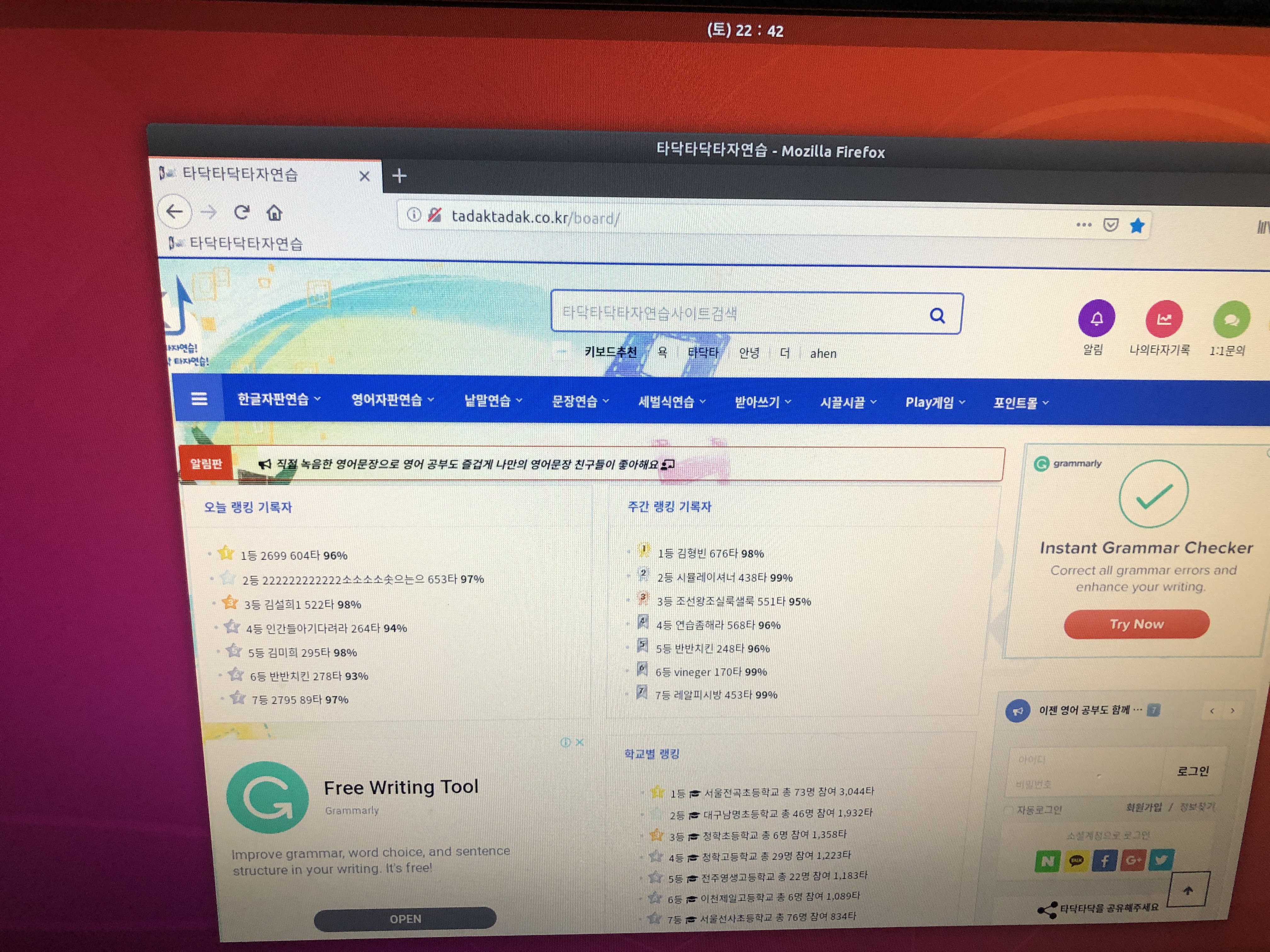 아이 컴퓨터로 우분투를 설치하니 가장 큰 문제가 한글 타자연습이더군요. 그래서 리눅스에서도 할 수 있는 (정확하게 말해서 웹 브라우저로 할 수 있는) 타자연습을 찾아봤습니다.